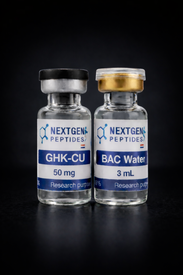 GHK-Cu (Glycyl-L-Histidyl-L-Lysine-Copper) is een synthetisch koperbindend tripeptide dat binnen wetenschappelijke onderzoeksomgevingen wordt bestudeerd vanwege de betrokkenheid bij cellulaire signaalprocessen, weefselregeneratie en extracellulaire matrix-mechanismen. Het peptide vormt een complex met koperionen, waardoor het vaak wordt gebruikt als onderzoeksinstrument in biochemische en celbiologische studies.